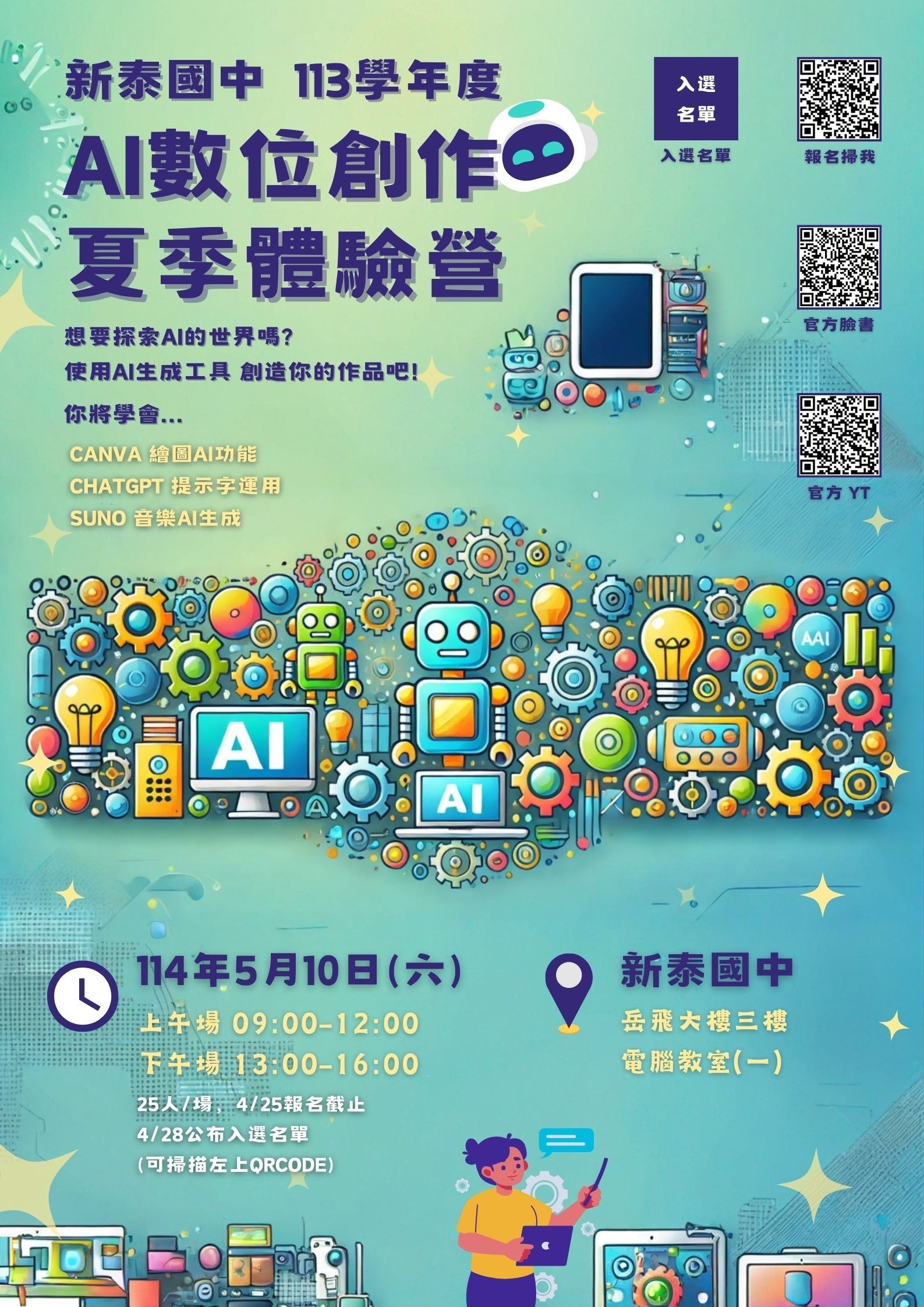 【轉知】本市新泰國民中學辦理「114年度新北市智慧學習典範學校數位推動」數位營隊活動