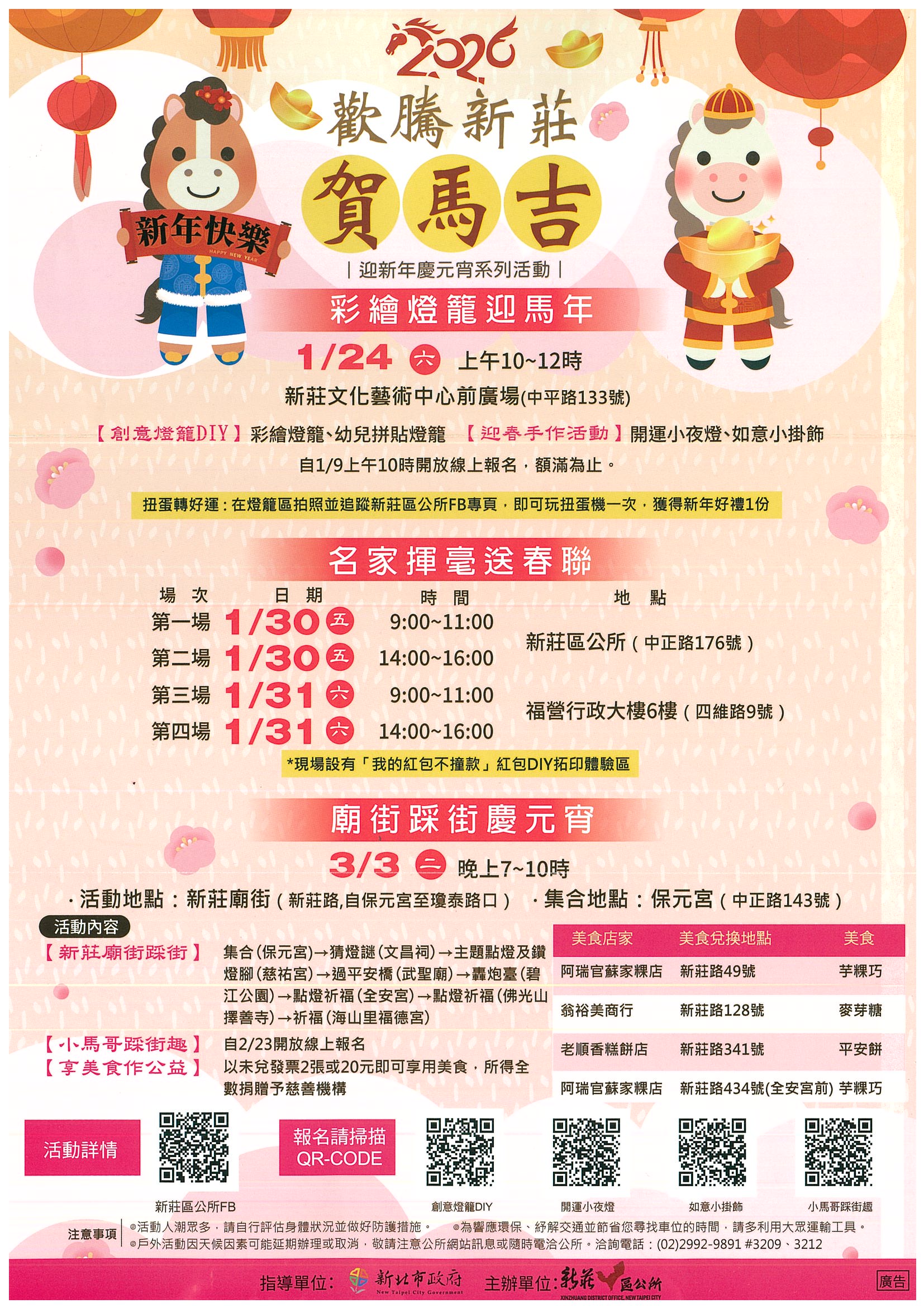 【轉知】新莊區公所辦理迎新年慶元宵系列活動彩繪燈籠迎馬年活動