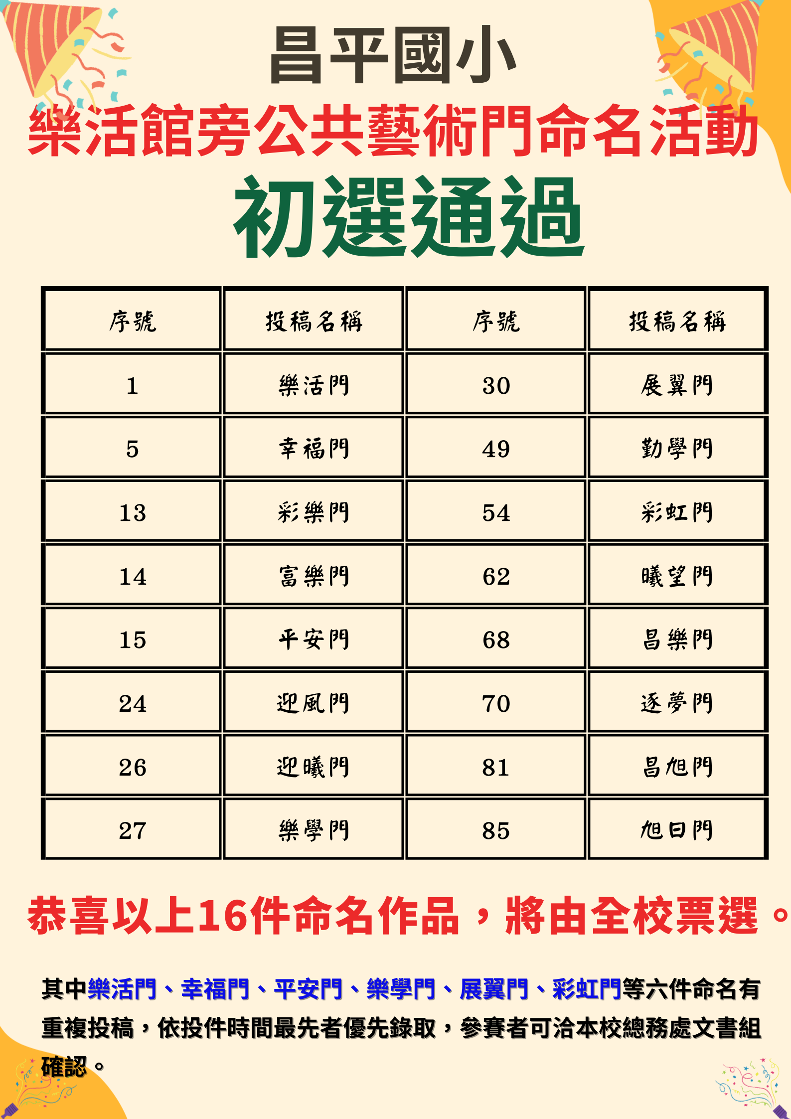 昌平國民小學114學年度樂活廣旁公共藝術門命名活動